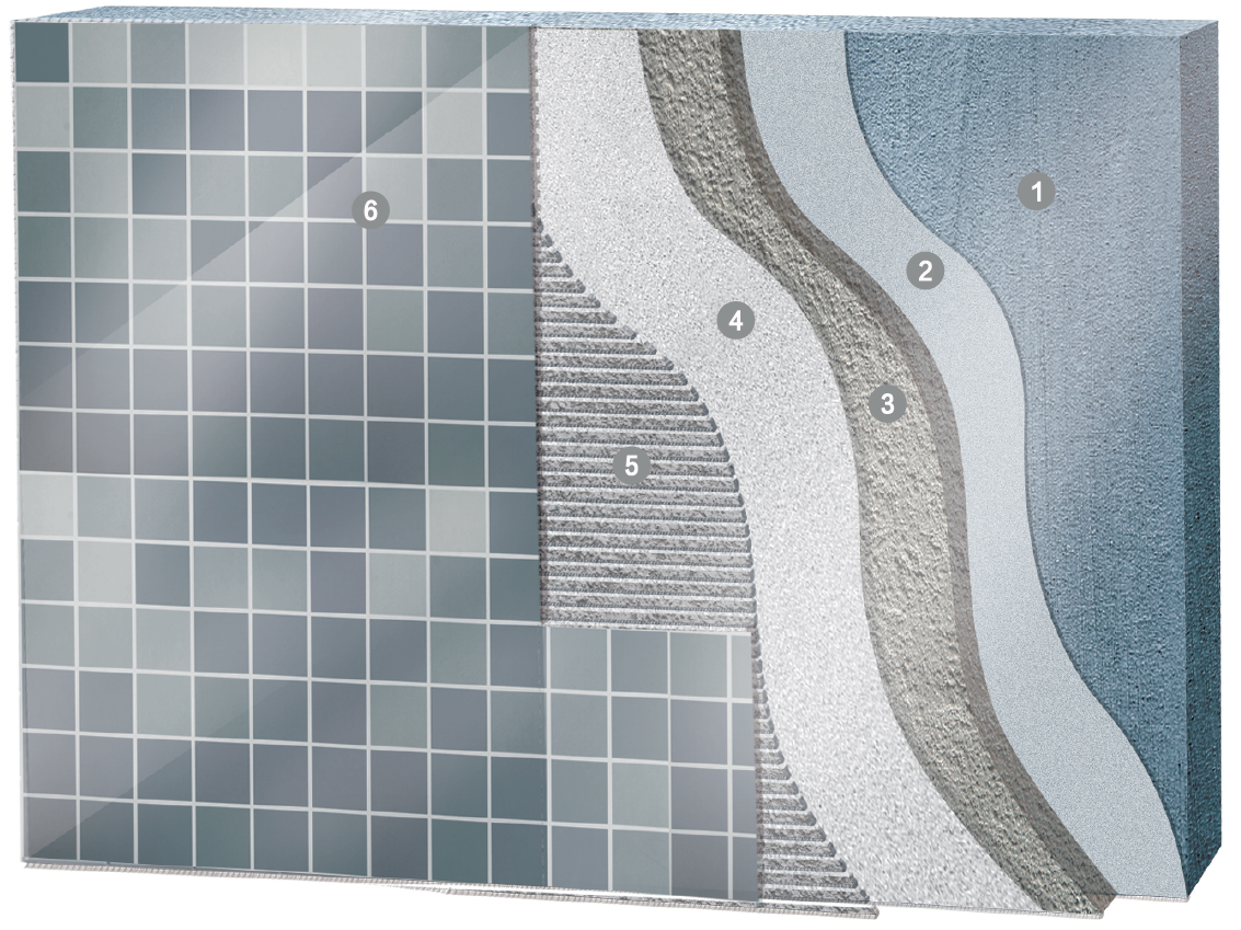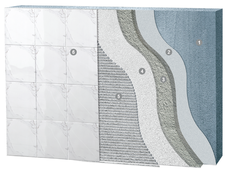 德优重砖粘贴系统专为大型瓷砖和石材设计,可抵御每平米30kg的重量而不下滑,同时系统中的各施工层次之间也具有优异的相容性